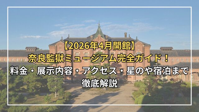 奈良【2026年4月開館】奈良監獄ミュージアム完全ガイド!料金・展示内容・アクセス・星のや宿泊まで徹底解説 2026年3月20日 すずめのぴんぴ https://www.travelphotolover.com/wp-content/uploads/2022/04/名称未設定のデザイン.png “Tabigraph タビグラフ”