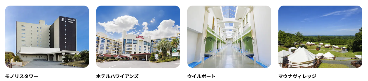 ハワイアンズにはコンセプトの異なる5つのホテルがあります。