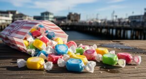 フィッシャーマンズワーフ名物の塩味キャラメルキャンディ。カラフルで可愛い見た目は、子供や女性へのお土産にぴったり。